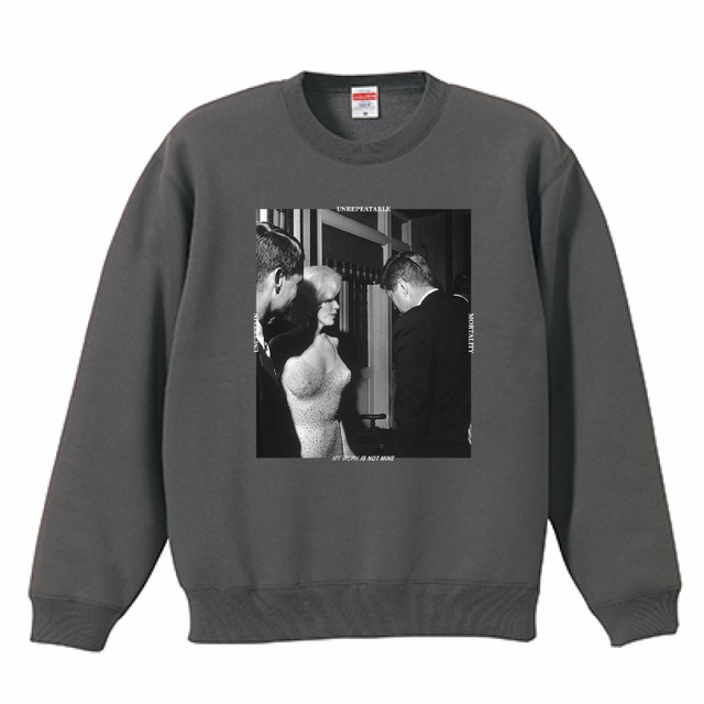 JFKの愛人との噂があったマリリンモンローと唯一同じ画角に収まった瞬間の一枚をサンプリング。 Body:United Athle 10.0oz T/C クルーネック スウェット(裏起毛) 完全受注生産のため発送は1〜2週間前後かかることご了承ください。